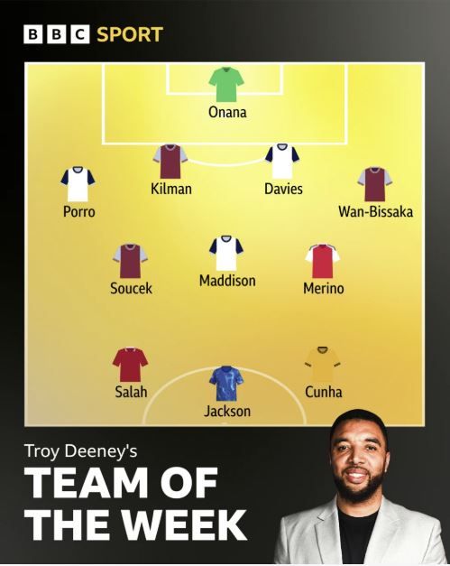 영국 BBC는 26일(한국시간) 축구 전문가 트로이 디니가 뽑은 2024~25 잉글랜드 프리미어리그(EPL) 12라운드 베스트11을 공개했다.