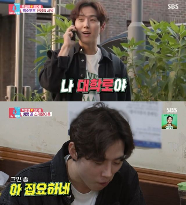 백성현은 오랜만의 등교에 설레임을 드러냈지만, 학교 후배에게 ‘수업 후 회식’을 물어보며 ‘아재 대학생’의 면모를 보였다.