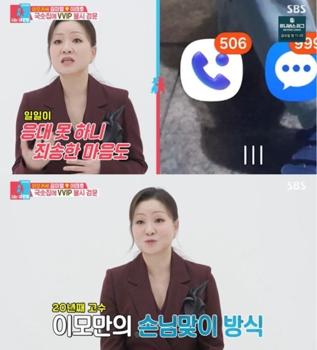 운영 방식이 대해 김미령 셰프는 "요즘은 전화가 너무 많이 와서 앱 활용도 생각해봤는데 일일이 응대를 못해 죄송한 마음이 들더라. 결국 옛날 방식대로 직접 통화해 (예약을) 받기로 했다"며 "한국 사회에는 아직 따뜻한 음식과 정이 있다. 제가 직접 전화로 응대하는 게 예의일 것 같다"고 설명했다.