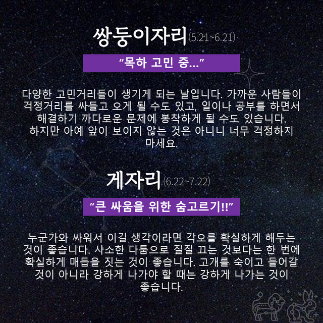 Δ 게자리 : 큰 싸움을 위한 숨고르기!!