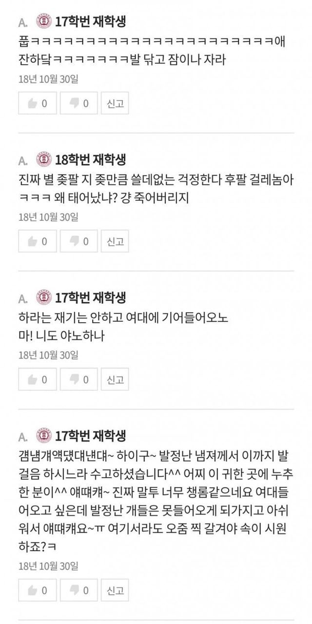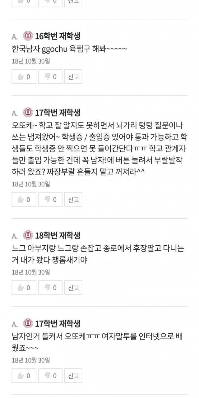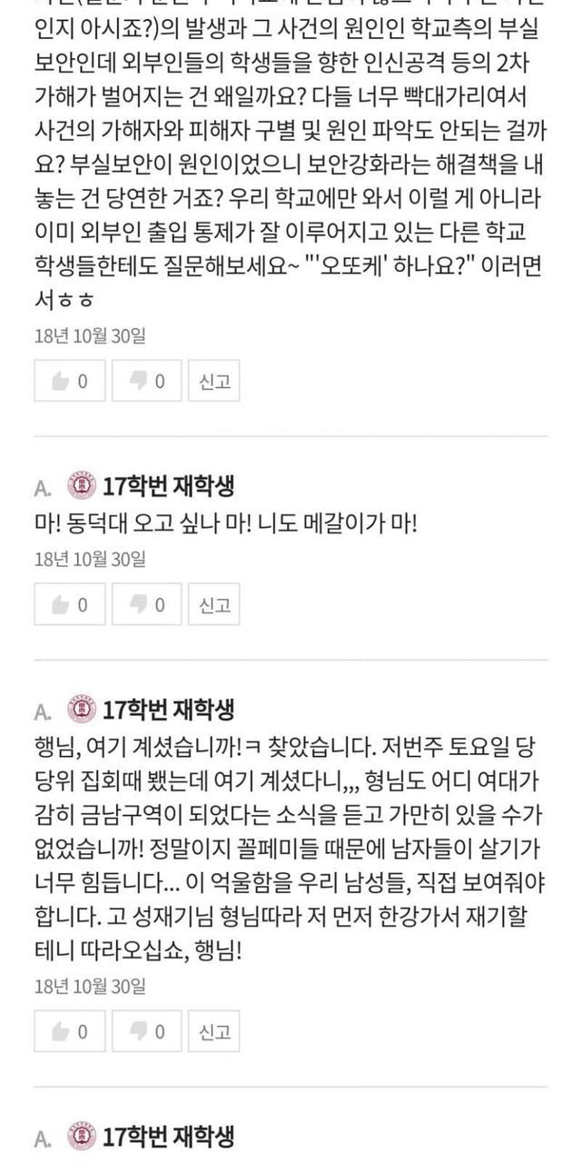 2018년은 동덕여대에서 알몸남 사건이 벌어져 동덕여대 자체가 학생들에 의해 금남구역으로 설정된 해이다.
