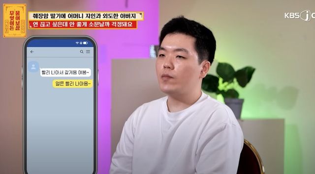 그는 아버지의 병과 관련한 보험 처리를 위해 아버지의 핸드폰을 맡았고, 그 과정에서 아버지의 메신저에서 외도의 흔적을 발견했다고 말했다.
