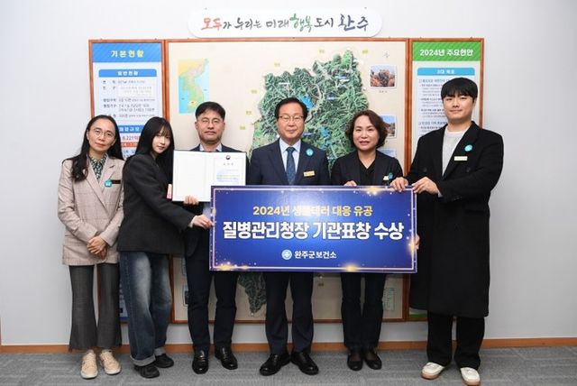 [파이낸셜경제=김영란 기자] 완주군이 질병관리청이 주관한 ‘2024년 감염병관리 콘퍼런스’에서 생물테러 대응 유공 우수기관으로 선정돼 질병관리청장 표창을 수상했다.