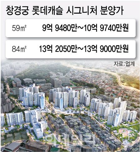 관심은 역시 분양가다. 관련 업계에 따르면 창경궁 롯데캐슬의 84㎡ 기준, 최고 분양가(10~12층)는 13억 9000만원이다. 각종 옵션을 넣으면 14억원을 훌쩍 넘는 숫자다. 그 외 84㎡는 13억 5000만원, 59㎡는 10억 5000만원 전후 수준이다. 3.3㎡당 평균 분양가는 4200만원이다.