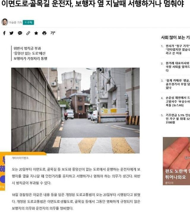 중앙선 없는 그야말로 골목길 주택가 도로이기에