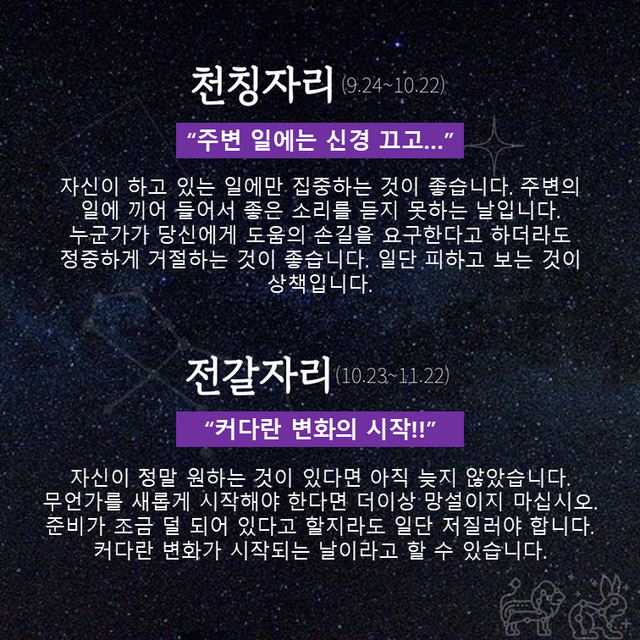 Δ 천칭자리 : 주변 일에는 신경 끄고…