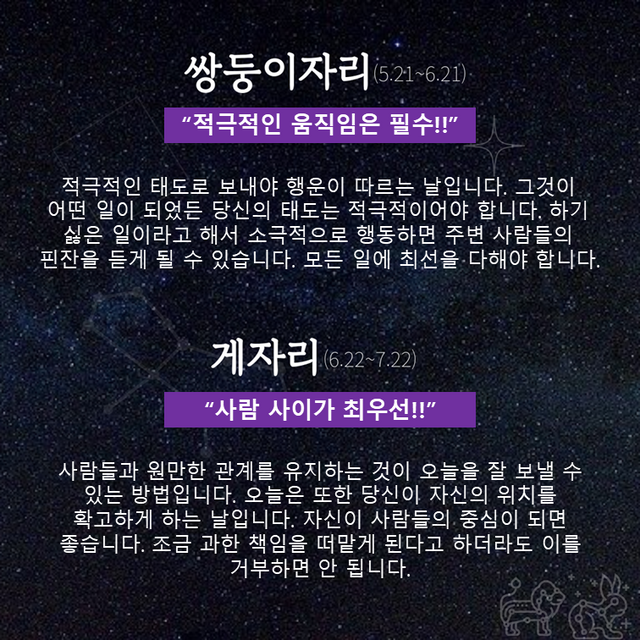 Δ 쌍둥이자리 : 적극적인 움직임은 필수!!