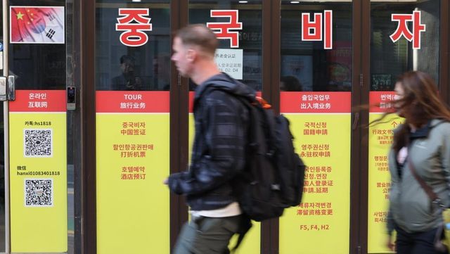 서울 시내 중국 관련 여행사에 비자 안내문이 붙어 있다. / 연합뉴스