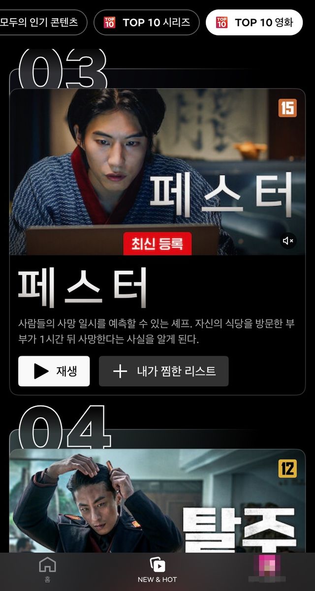 국내 신작 스릴러 영화 '페스터(Fester)'가 넷플릭스 공개 하루 만에 무서운 상승세를 보이고 있다. 지난 27일 넷플릭스 스트리밍을 시작한 이 작품은 공개 하루 만인 28일, 영화 '탈주'를 꺾고 3위에 안착하며 1위 자리를 노리고 있다.