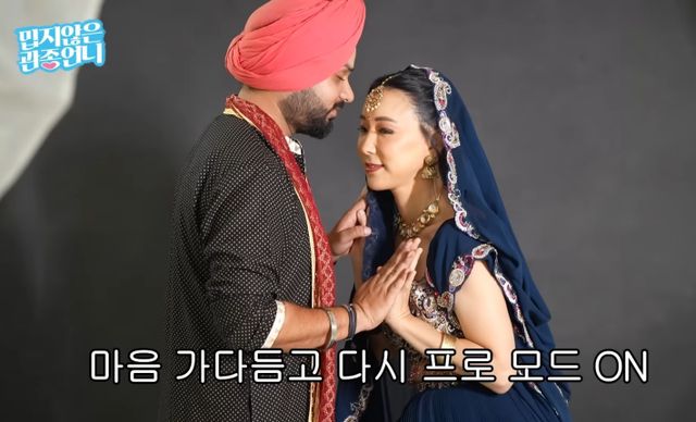 그동안 볼 수 없었던 비주얼과 의상으로 등장한 이지혜는 유튜브 프로필에 사용할 증명사진을 찍더니 갑자기 '인도 가족사진' 촬영을 선언했다. 알고 보니 현지 남성과 부부인 척 사진을 찍는 것.