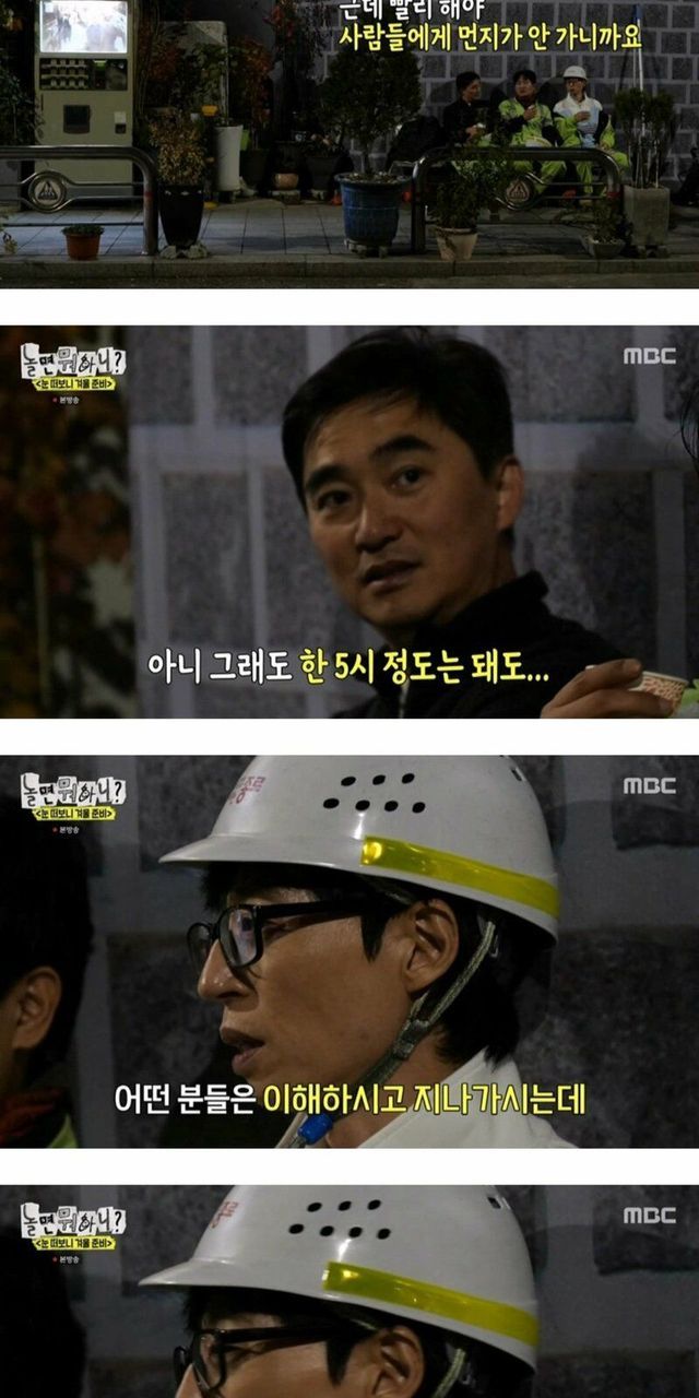 얼마전에 환경미화원분 출근하시기전에 식사하고 가셨는데