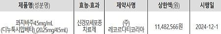 (유)한국비엠에스제약 캄지오스, ㈜레코르다티코리아 콰지바주4.5mg/mL가, 건강보험에 적용됐다.