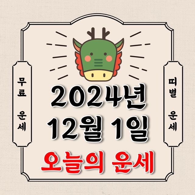 오늘의 운세 2024년 12월 1일 일요일 (음력 11월 1일 / 띠별 운세 / 생년월일 운세)에 대해 알아 보겠습니다.
