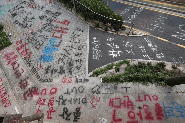 해당 게시물에는 학생들이 학교 건물 곳곳에 래커 낙서를 남기고 기물을 훼손한 장면이 담겨 있기도 했는데, 특히, 학교 내부 CCTV 영상에서 일부 시위 학생들이 캠퍼스 내에서 낙서를 하고 시위 도구를 설치하는 모습이 확인되며 책임 공방이 더욱 뜨거워졌습니다.