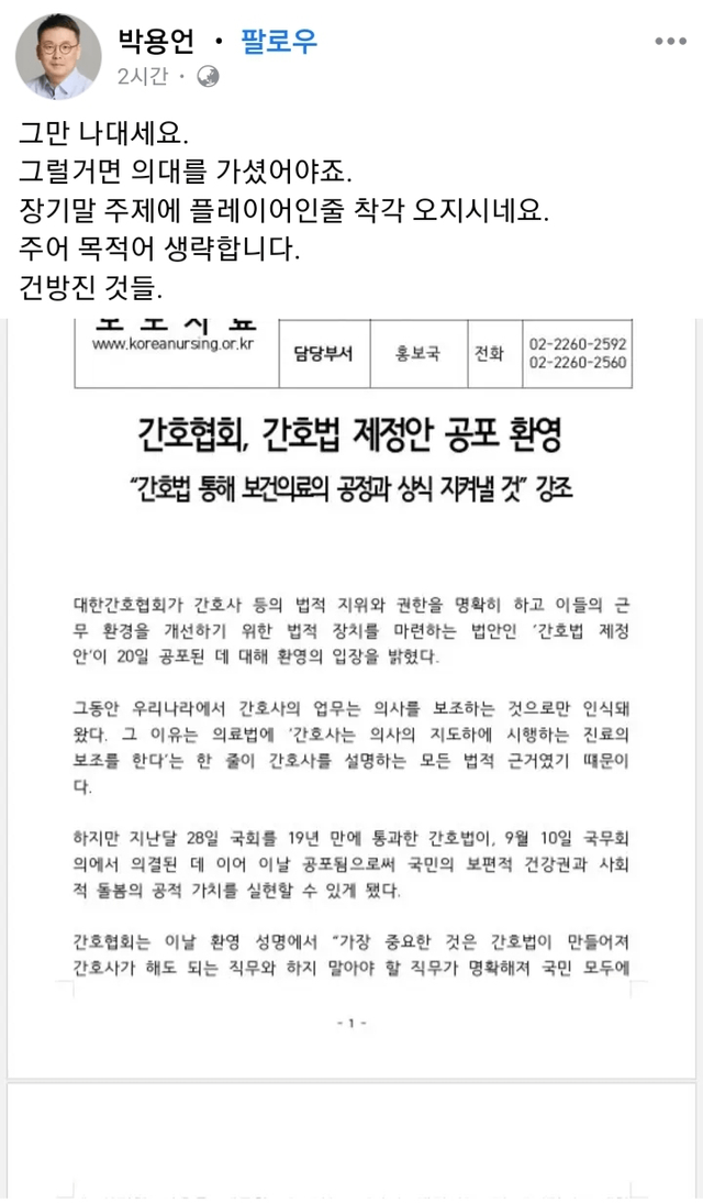 '건방진 것들' 이라며 천룡인적 마인드 가지셨던 의협 부회장 해명 뜸ㅋㅋ