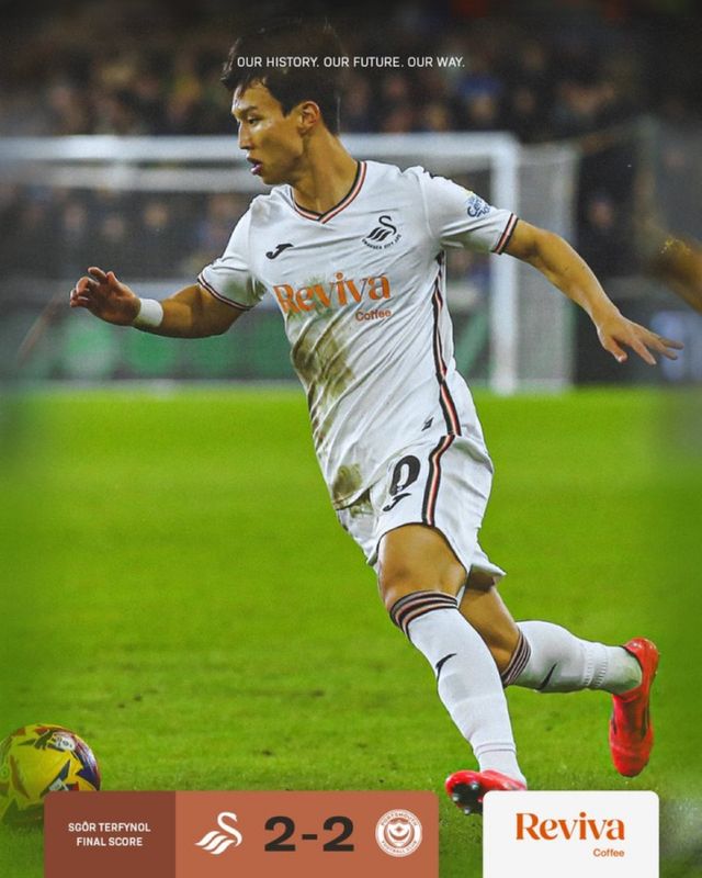 스완지는 1일 영국 스완지닷컴 스타디움에서 열린 포츠머스와 2024~25 잉글랜드 챔피언십(2부리그) 18라운드 홈 경기에서 2-2로 비겼다.