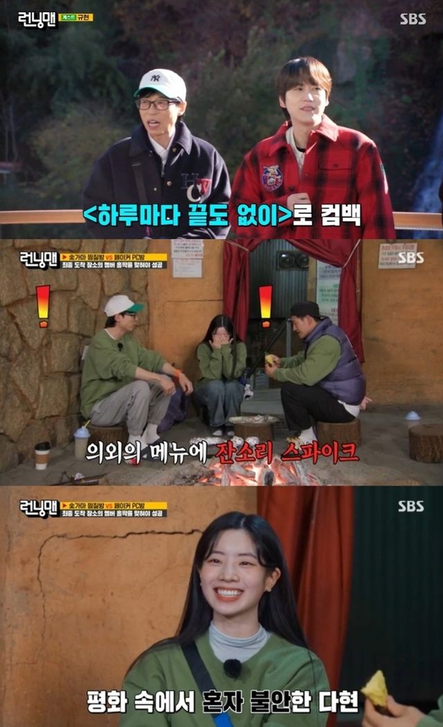 이날 방송은 ‘현명한 홀짝 선택’ 레이스로 꾸며져 가수 규현과 트와이스 다현이 게스트로 출격했다. 1년여 만에 출연하는 규현은 등장부터 신곡을 부르며 멋진 모습으로 등장했지만 이내 “원래 이렇게 춥냐”며 의아해했고, 유재석은 “비타민D가 부족한 것 같다”고 덧붙여 웃음을 자아냈다.
