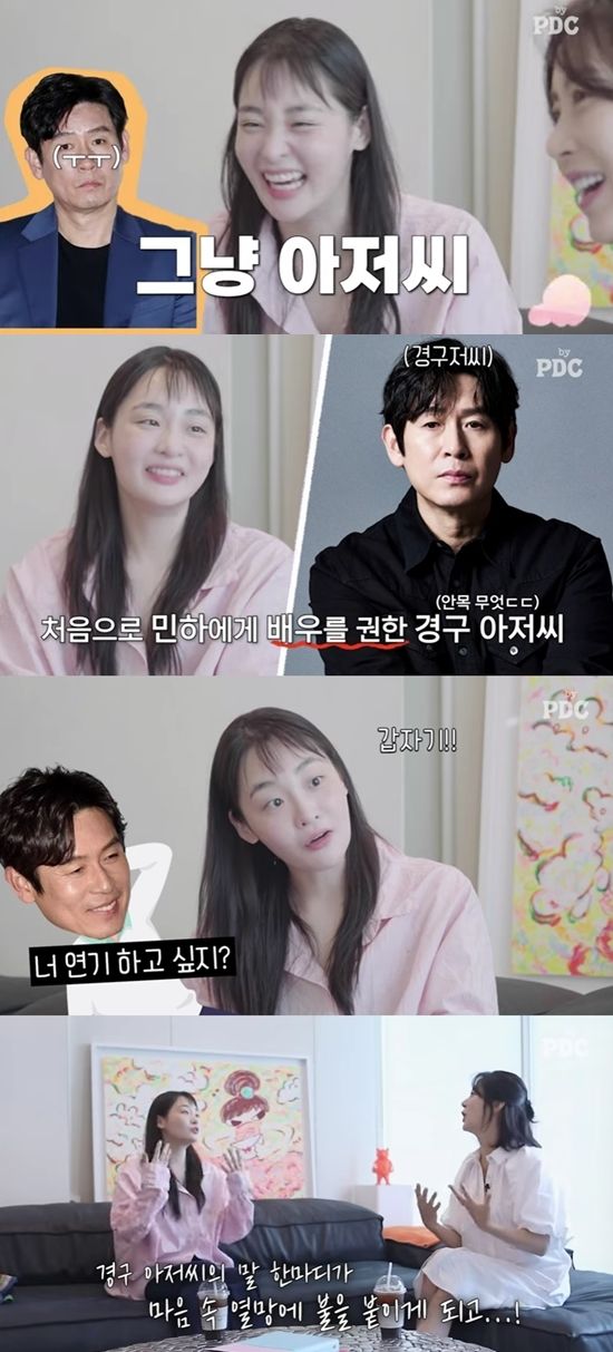 뮤지컬 배우가 꿈이었다는 김민하에게 배우를 권한 것 역시 '경구 아저씨'. 김민하는 "안목이 높다"고 너스레를 떨며 "언니 집에서 승윤이랑 놀아주고 있었는데 아저씨가 소파에 누워 있다가 '너 연기하고 싶지' 이러셔서 깜짝 놀랐다"고 이야기했다.
