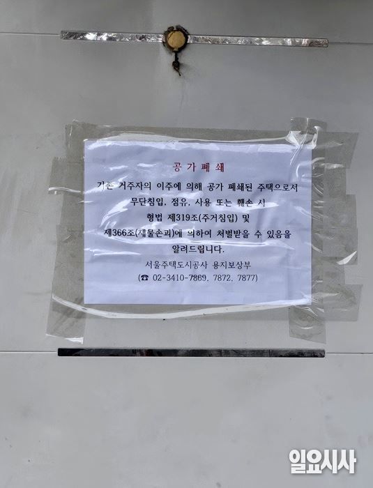 가벽으로 이뤄진 집들은 대문은 굳게 잠겨있었고 문에는 “기존 거주자의 이주에 의해 공가 폐쇄된 주택으로서 무단침입, 점유, 사용 또는 훼손 시 형법 제319조(주거침입) 및 제366조(재물손괴)에 의해 처벌받을 수 있음을 알려드린다”는 서울주택공사의 안내문만이 붙어있었다.