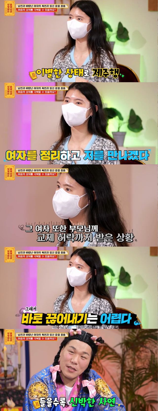 (엑스포츠뉴스 이유림 기자) 한 사연자가 남자친구가 바람난 후 임신 중절을 하게 되면서 내연녀에 폭언까지 듣게 된 사연을 털어놓았다.