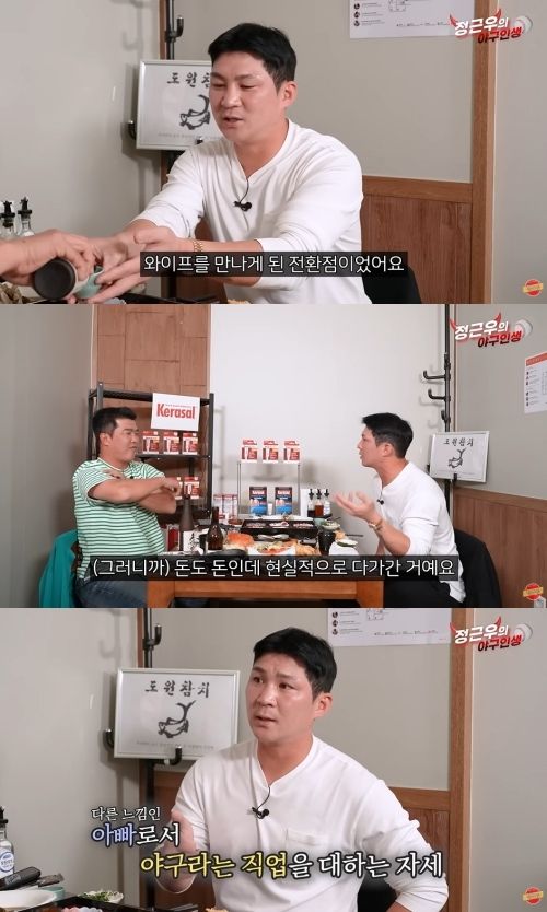 그는 "결혼 후 아내와 둘이 오피스텔에서 연애하듯 즐기며 살았는데, 첫 FA 때 아이가 생겼다. 아빠가 된다는 게 얼마나 큰 축복인지 느끼며 책임감이 커졌다"며 "야구선수라는 직업이 다르게 다가오더라. 그때부터 제대로 된 평가를 받기 위해 칼을 갈았다. 내가 받아야 할 비판을 가족까지 받을 때는 야구를 더 잘하고 싶었다"고 말했다.