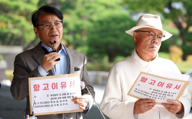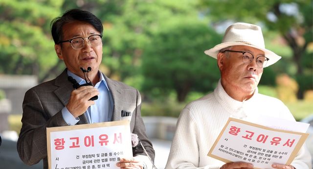 최재영 목사와 백은종 서울의소리 대표(오른쪽)가 기자회견을 하고 있다. 자료 사진.경찰이 3일 오전부터 서울의소리 본사와 서울의소리 기자인 이명수 기자의 자택, 최재영 목사의 자택을 압수수색하고 있는 것으로 전해졌다. / 뉴스1