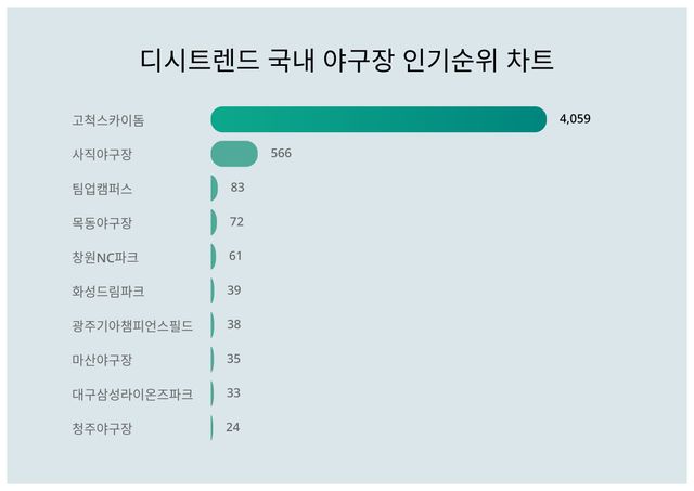 ▲국내 야구장 인기지수 분석 결과 ⓒ디시트렌드