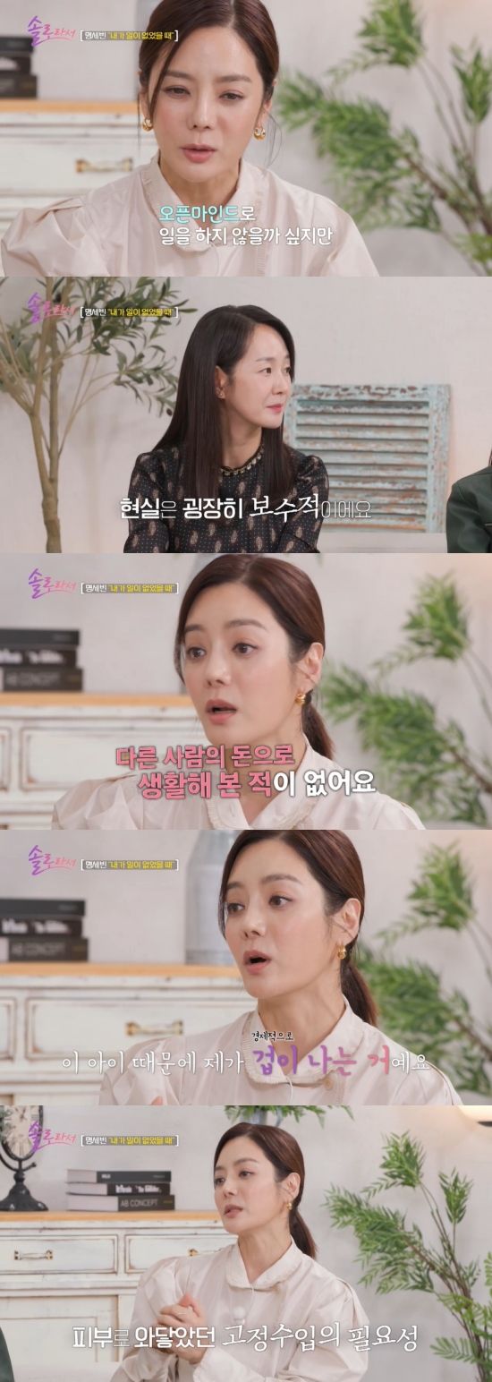 3일 방송된 SBS Plus·E채널 '솔로라서'에서는 명세빈이 이혼 후 작품이 끊기며 생활고를 겪었던 일을 털어놓는 모습이 그려졌다.