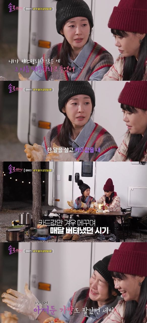 '세빈카세' 캠핑 버전을 성공시킨 명세빈은 강래연과 속 깊은 대화도 나눴다. 명세빈은 "30대 시절, 일이 뚝 끊겨서 힘들었다. 한 달을 살고 카드값을 내면 돈이 또 없었다"고 털어놨다.