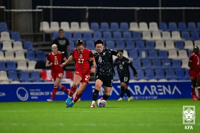 신 감독은 캐나다를 맞아 지소연(시애틀 레인)을 벤치에 두고 이민아(인천 현대제철)와 최유정(화천 KSPO)을 투톱에 배치하며 실험했다. 골문도 2003년생 김경희(수원FC)가 지켰다.