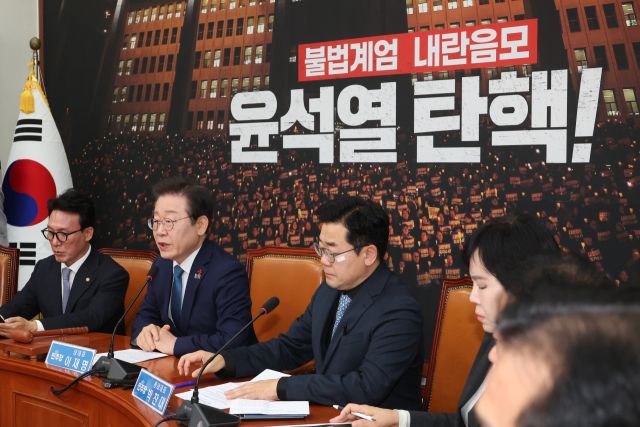 더불어민주당 이재명 대표는 윤석열 대통령의 비상계엄 시도를 "왕정을 꿈꿨던 친위 쿠데타"라고 규정하며 "윤 대통령에 대한 탄핵은 반드시 해내야 한다"고 했다.