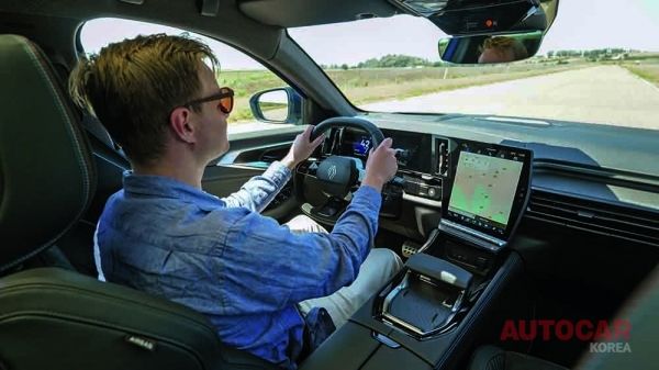 물리 스위치 기어는 비교적 풍부하게 제공되며, 촉감과 접근성 모두 만족스럽다. 테두리가 두툼한 스티어링 휠은 무심하게 네모난 모양이지만 익숙한 오디오 및 크루즈 컨트롤 토글과 양쪽에 잘 반응하는 햅틱 버튼 패널이 있다. 모두 예상한 위치에 잘 배치되어 있다. 능동형 안전 및 인포테인먼트와 관련하여 최근의 ‘제대로 된’ 행보를 이어가는 르노는 라팔의 터치스크린에 너무 많은 기능을 부여하지 않았다. 토글스위치로 실내 온도 조절을 쉽게 조절할 수 있고, 스티어링 휠 측면에 저장된 ADAS 설정 활성화 버튼이 있다.