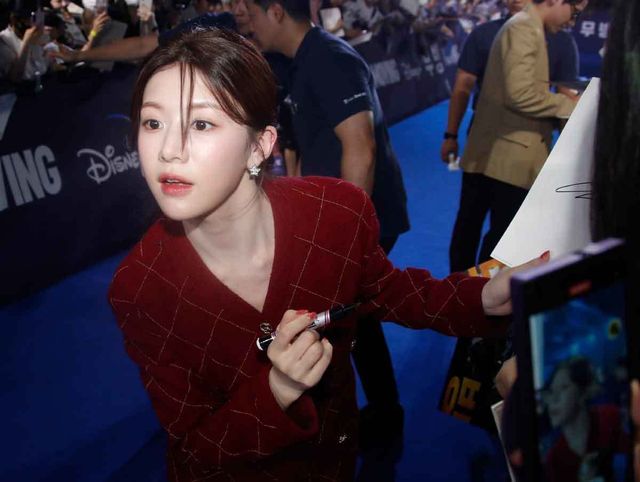 배우 고윤정이 지난해 8월 3일 서울 성동구 S팩토리에서 열린 디즈니+ 새 오리지널 시리즈 '무빙' 블루 카펫 행사에서 팬과 즐거운 시간을 보내고 있다. '무빙'은 초능력을 숨긴 채 현재를 살아가는 아이들과 아픈 비밀을 감춘 채 과거를 살아온 부모들의 이야기를 그린 휴먼 액션 시리즈다. / 뉴스1