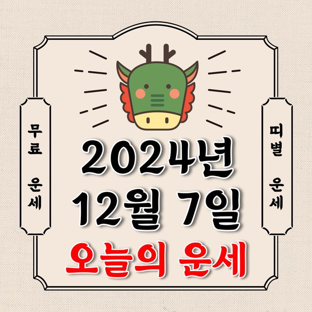 오늘의 운세 2024년 12월 7일 토요일 (음력 11월 7일 / 띠별 운세 / 생년월일 운세)에 대해 알아 보겠습니다.