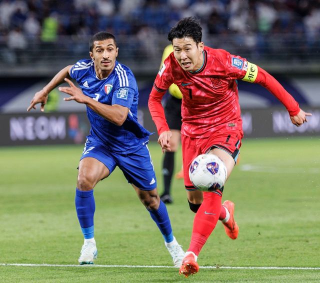 지난달 14일 오후(현지 시각) 쿠웨이트 자베르 알 아흐메드 국제 경기장에서 열린 2026 북중미 월드컵 아시아지역 3차 예선 B조 5차전 한국과 쿠웨이트의 경기에서 한국 축구대표팀의 손흥민이 공을 향해 질주하고 있다. / 연합뉴스