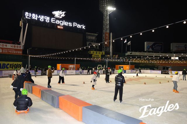 한화는 지난달 29일부터 3일까지 닷새 동안 한화생명 이글스파크 외야에 아이스링크를 설치해 팬들이 스케이트를 즐기며 추억을 쌓을 수 있는 '윈터랜드; 아듀! 이글스파크'를 진행했다.
