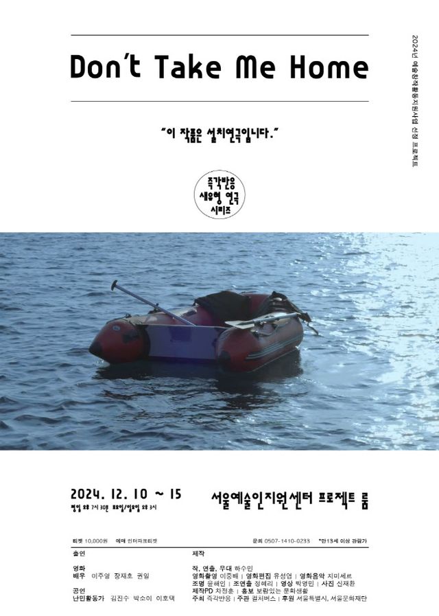 ◇연극 ‘돈 테이크 미 홈’ (12월 10~15일 서울예술인지원센터 프로젝트 룸 / 즉각반응)