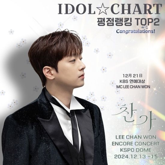 (엑스포츠뉴스 이정범 기자) '찬또배기' 이찬원이 11월 5주 차 아이돌차트 평점 랭킹 2위에 올랐다.