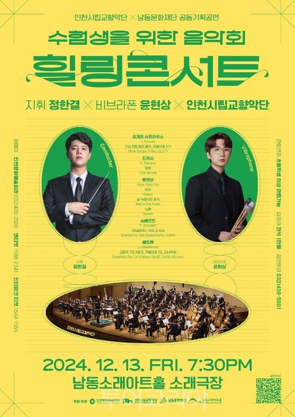 [투어코리아=이주현 기자] 인천시립교향악단이 남동문화재단과 함께 일상 속의 작은 휴식이 되어 줄 수험생을 위한 음악회 ‘힐링콘서트’를 마련한다.