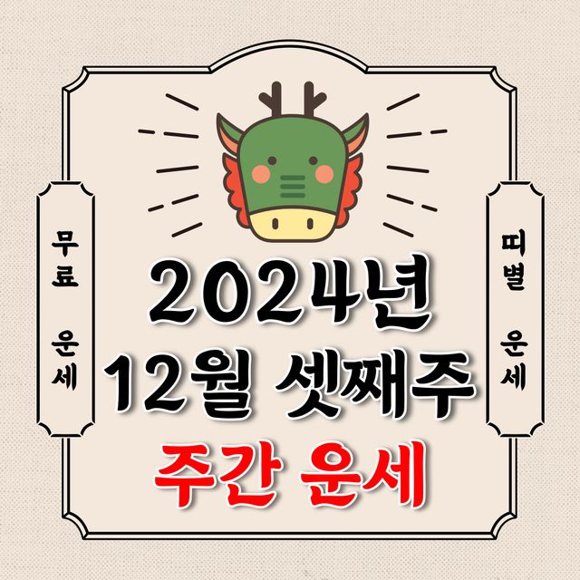 오늘의 운세 2023년 12월 셋째주 2024년 12월 16일~2024년 12월 22일(음력 11월 16일~11월 22일 / 주간 운세 / 생년월일 운세)에 대해 알아 보겠습니다.