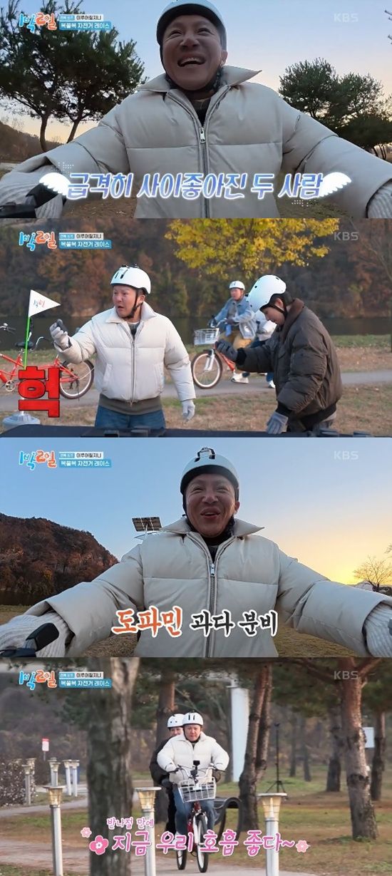 멤버들은 마지막 5라운드를 앞두고 경천섬으로 이동해 자전거를 타고 우정 라이딩의 시간을 즐겼다.