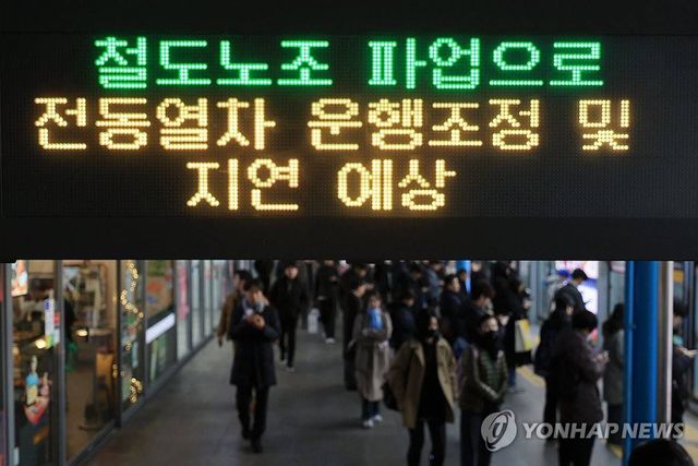 한편, 일요일이었던 전날 오후 3시 기준 열차 운행률은 평상시의 70.1% 수준으로 파악됐다. 열차별로는 KTX 68.7%, 여객열차(새마을호·무궁화호) 58.3%, 화물열차 52.4%, 수도권 전철 73.9%다.