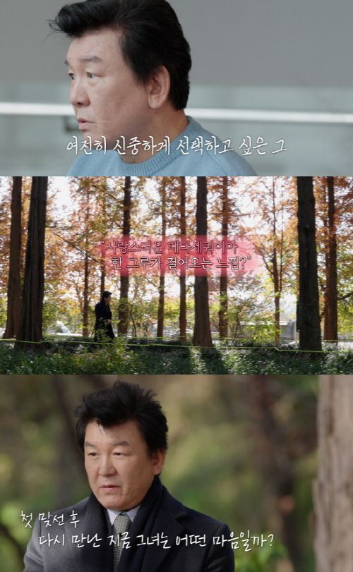 (엑스포츠뉴스 김현정 기자) 9일 방송하는 tvN STORY ‘이젠 사랑할 수 있을까’에서는 박소현과 채민호의 계속되는 교외 데이트와 더불어 마지막 선택을 앞둔 주병진의 고민이 이어지는데, ‘애프터 할 결심’을 세운 그의 인연 찾기에 모든 이들의 시선이 주목된다.