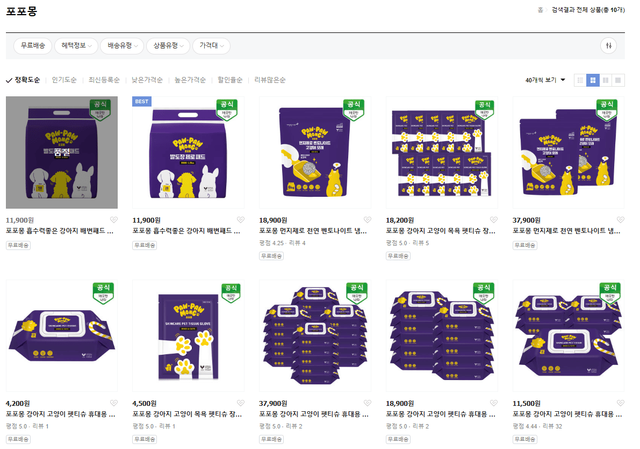 깨끗한나라, 포포몽 네이버 스토어 캡처 / 깨끗한나라 네이버 스토어 화면