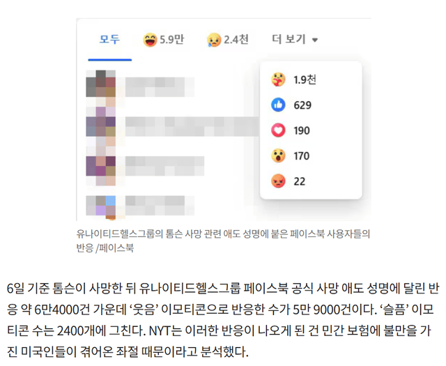 이번에 미국을 떠들썩하게 만든 보험회사 CEO 암살사건
