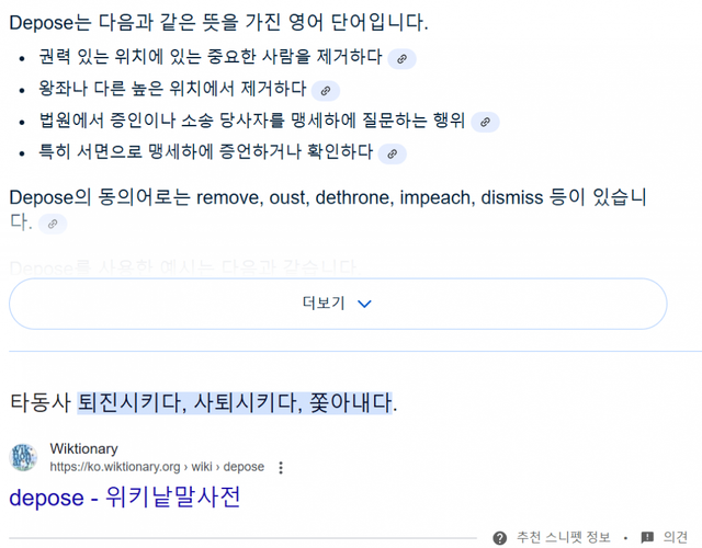 구글에 영어로 Depose mean 을 검색하면 나오는 예문은