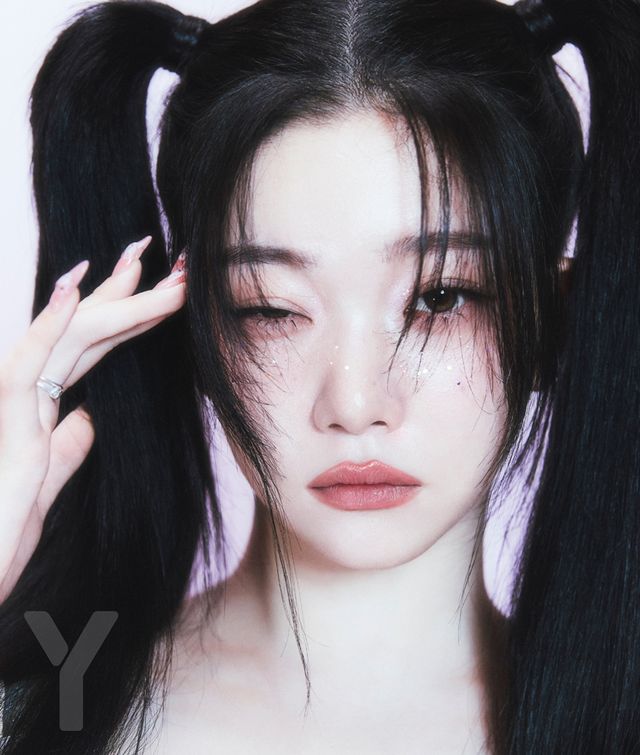 이어, 블랙 앤 화이트 조합의 스타일링을 통해 한계없는 소화력을 자랑한 가운데, 무대 위 모습과는 또 다른 신비롭고 몽환적인 분위기를 연출했다.