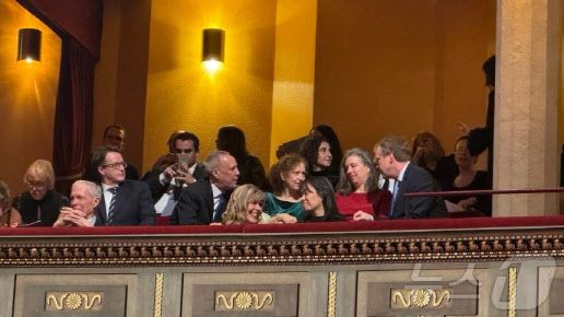 노벨문학상 수상자인 작가 한강(54)이 8일 오후 7시 스톡홀름 콘서트홀에서 열린 ‘노벨상 콘서트’에 참석했다. (사진=뉴스1ⓒ김일창 기자).