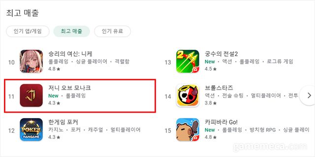 지난 4일 출시된 엔씨소프트 신작 ‘저니 오브 모나크’가 첫 주말 직후 구글 플레이에서 게임 매출 11위를 기록했다.