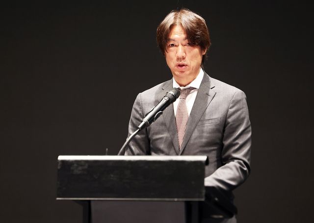 9일 열린 '제23회 홍명보장학재단 장학금 수여식'에서 홍명보 이사장이 인사말을 하고 있다. / 연합뉴스